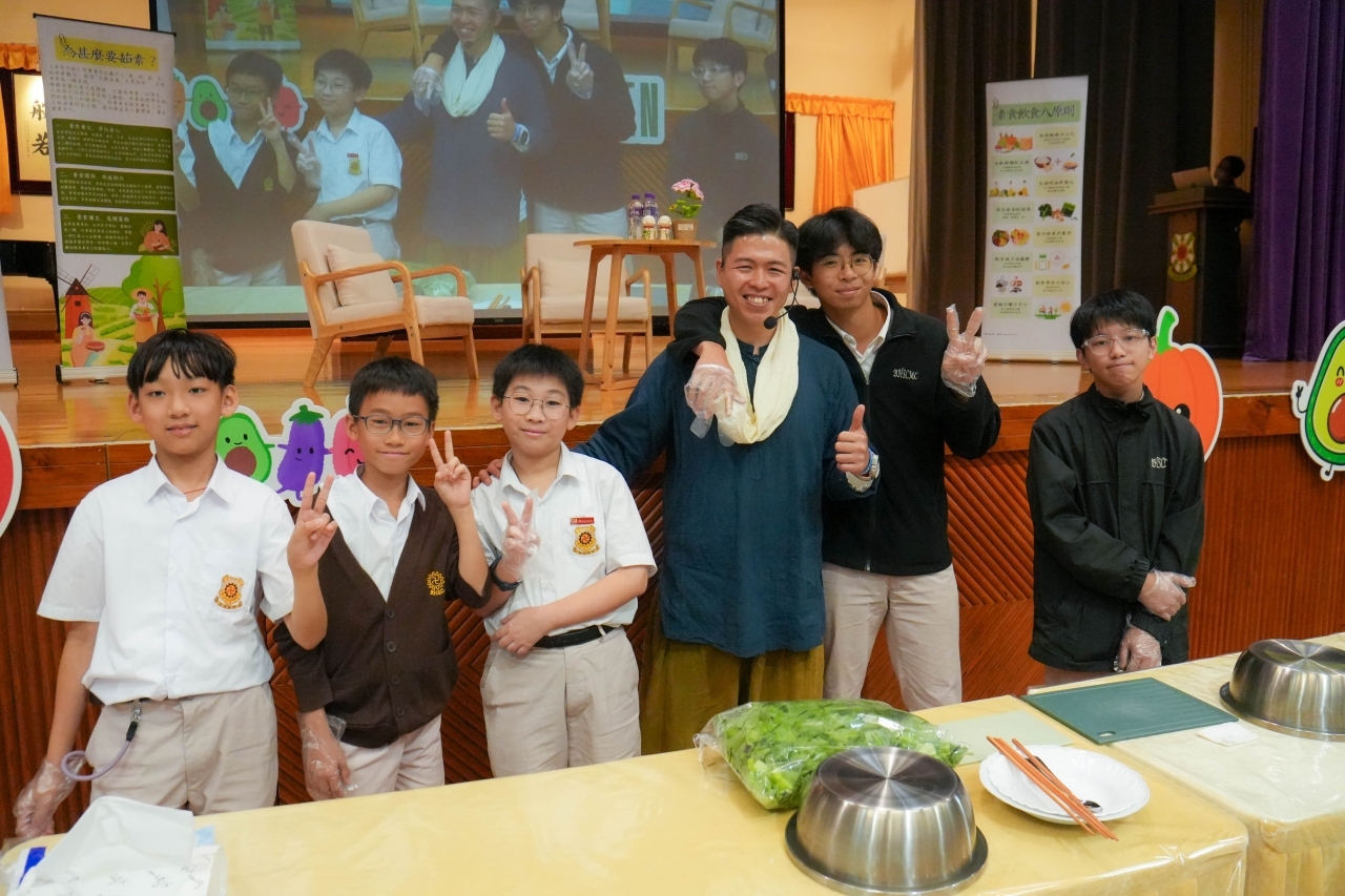 11 月 14 日,我校有幸邀請素食教煮鄺梓罡居士蒞臨校園,與同學們暢談素食之樂,分享「健康人生 - 素食內外美」的生活智慧。