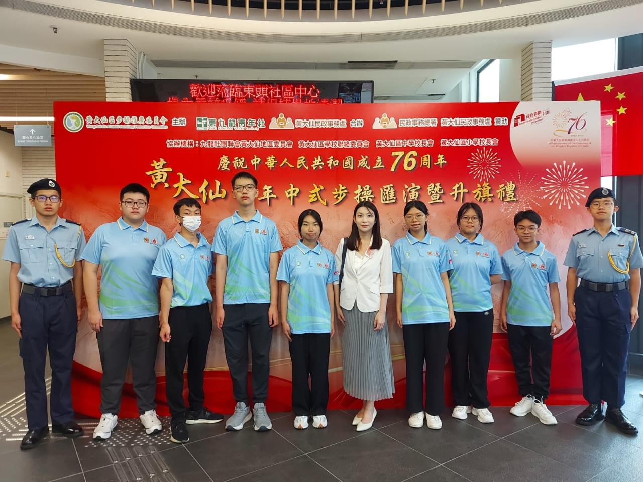9月28日,本校升旗隊隊員出席了由黃大仙區步操推廣委員會主辦「中華人民共和國成立76週年:黃大仙全民慶祝國慶日-青年中式步操大匯演」。活動讓同學感受到步操的紀律與團結,亦激發同學對國家的熱愛與認同感。