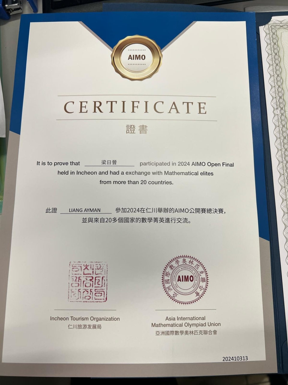 梁日晉 4B AIMO晉級賽 (銅獎)