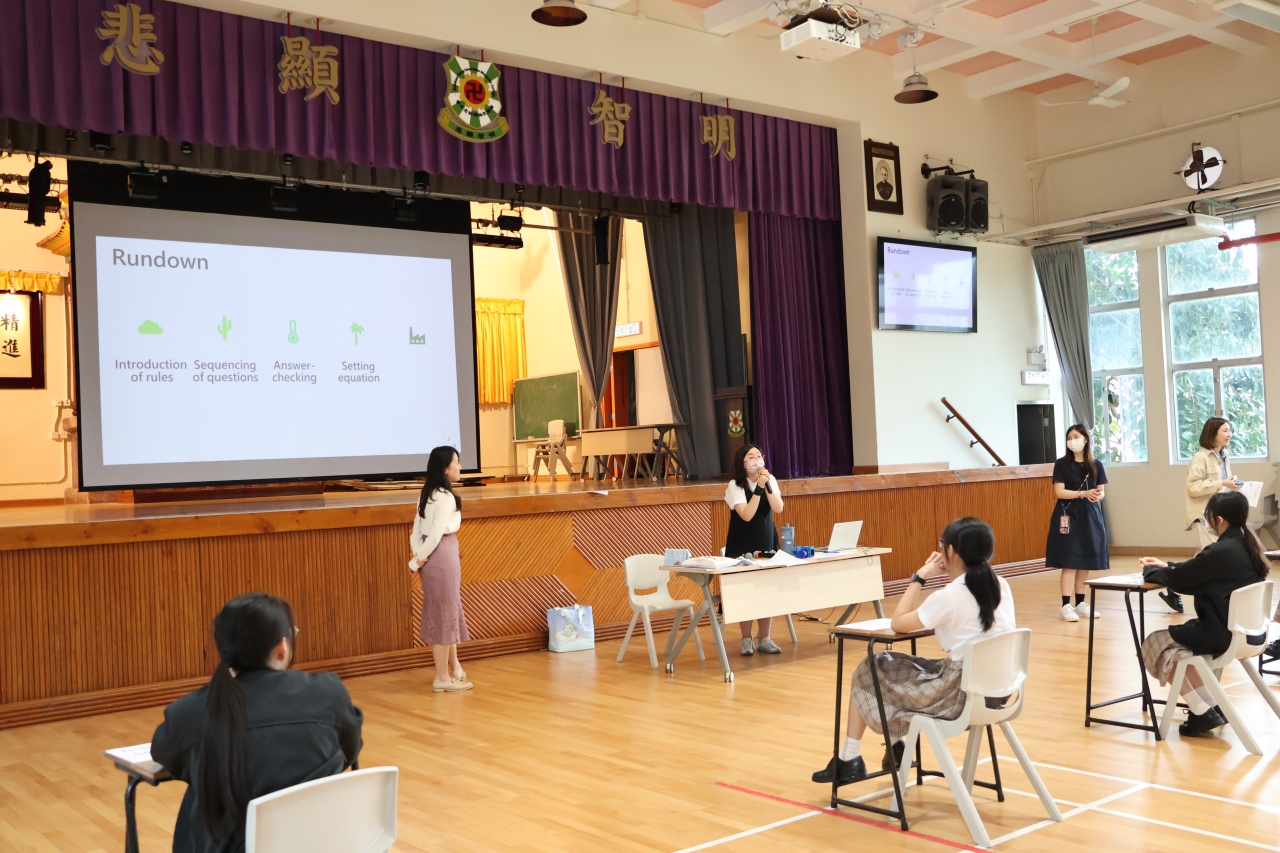 2025年3月27日,數學科與英文科,在本大禮堂進行了一次大型的誇學科專題研習,活動對象為中四級英文數學班同學,並針對數學科課題:聯立方程,以及英文科生字表及重組句子:專業的體育詞彙。同學們表現積極,比起傳統的學習模式,明顯更生動、更有效。