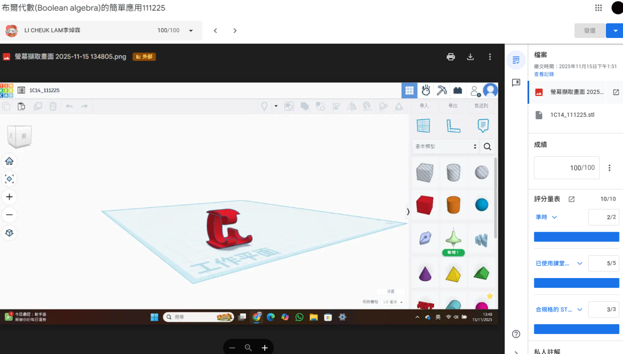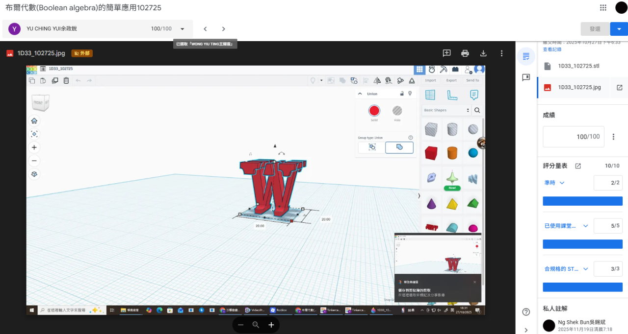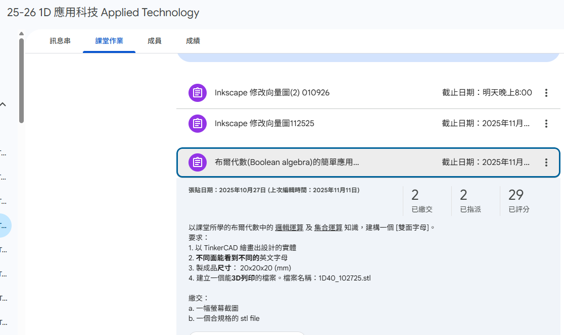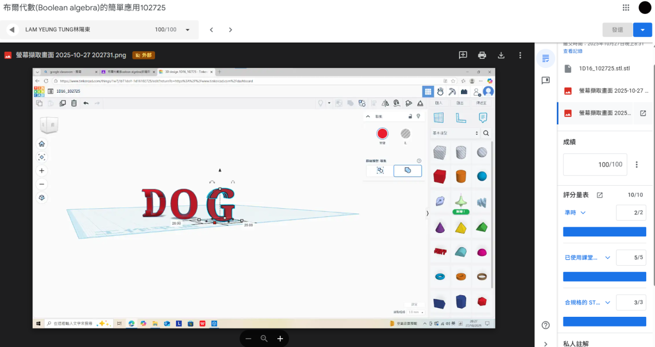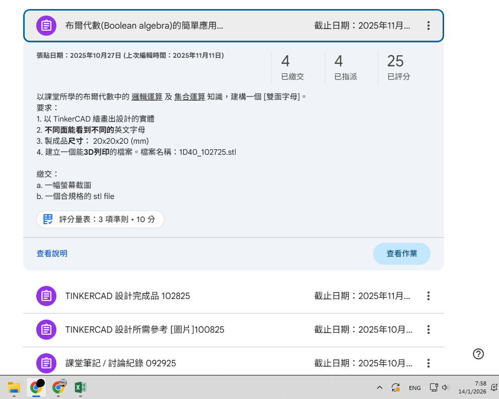 2025年6月20日,數學科與應用科技科,進行了一次誇學科工作坊,是次活動,初中級同學在數學科中學會:透視圖的應用 (正視圖、俯視圖、左視圖、右視圖),以及布爾代數 (Boolean Algebra) 的入門理論,而應用科技科,則學會應用3D打印機的技巧,透過今次活動,同學發揮創意,成功製造出各款不同的小禮物。