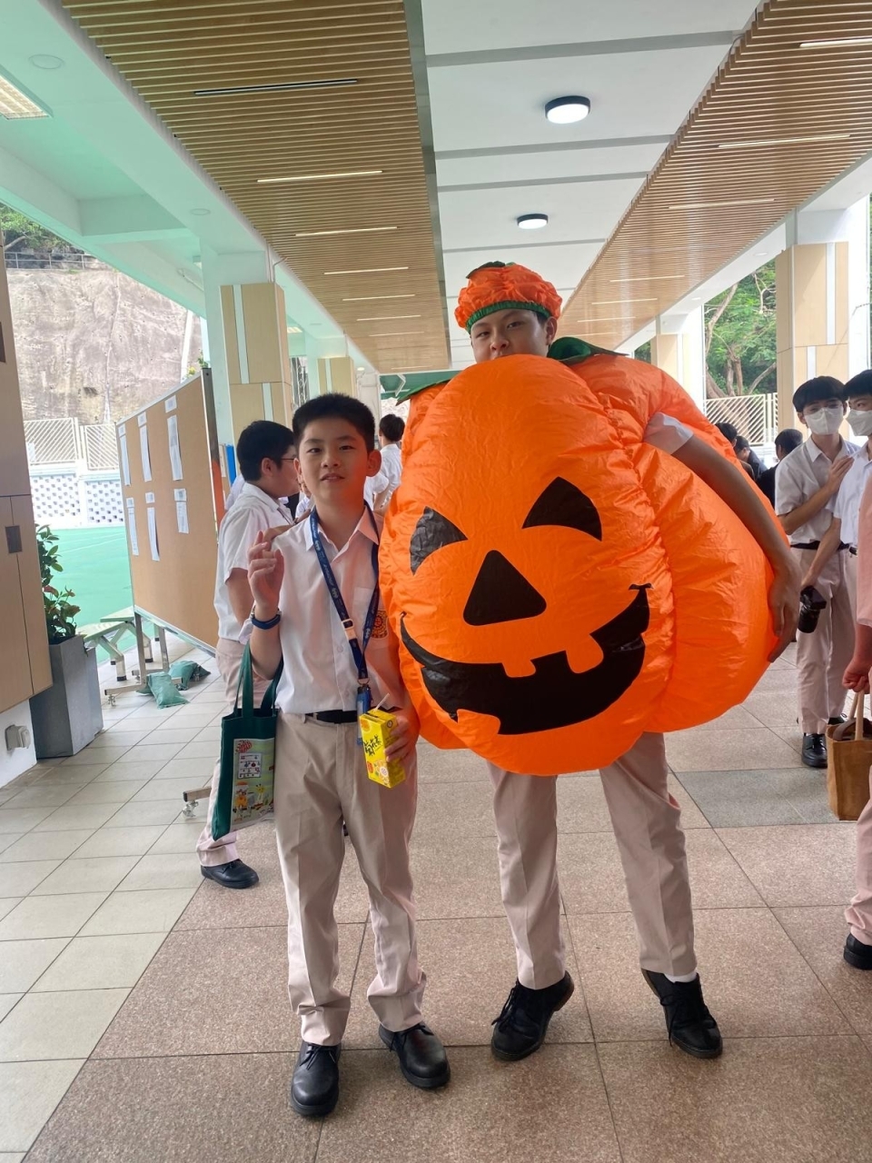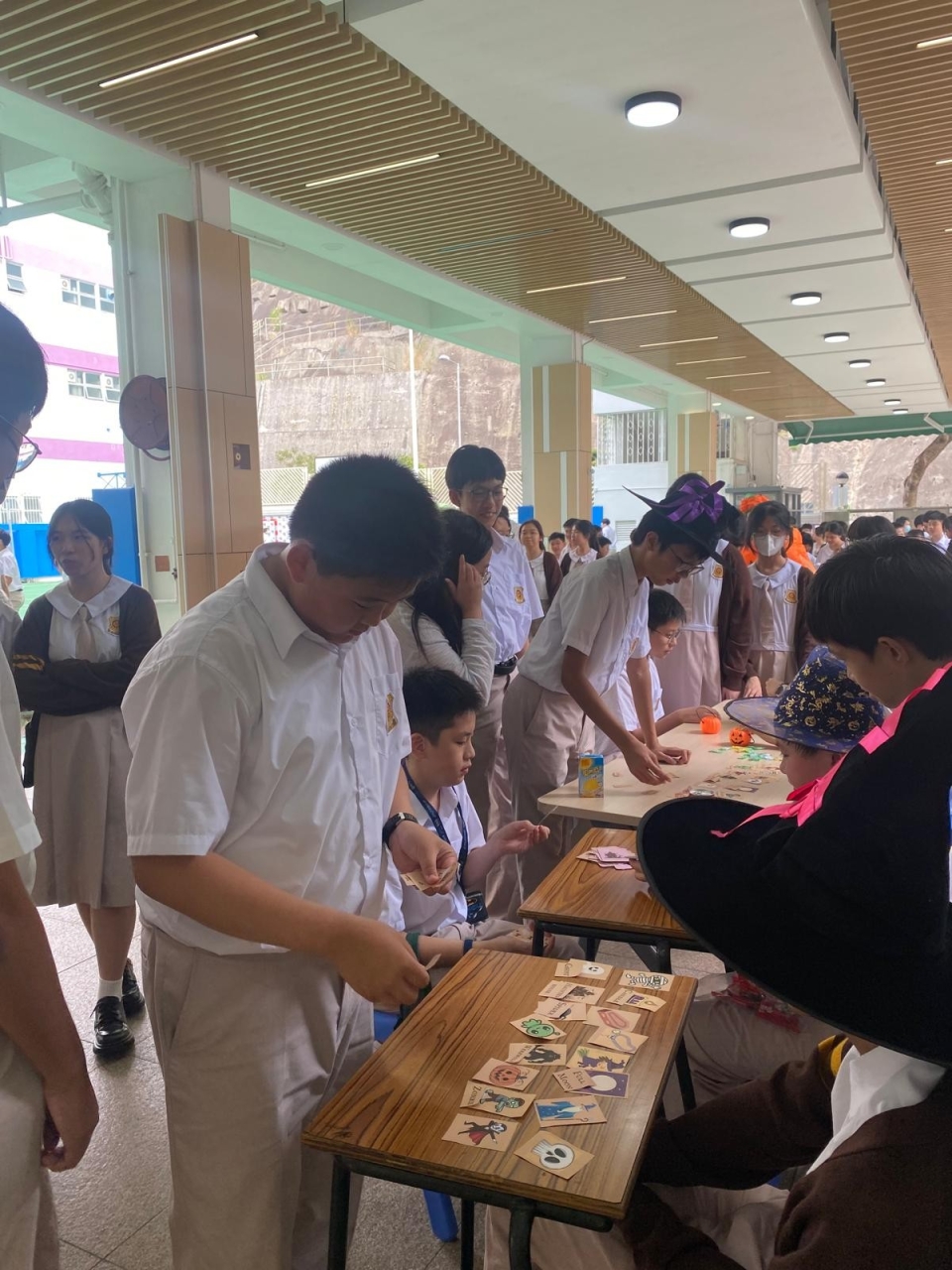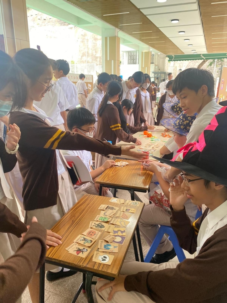 Our NET teacher Mr. Ray also organized many game booths in the playground. Making paper spiders, throwing toy pumpkins and grabbing creepy crawling critters, the students were learning vocabulary while playing.