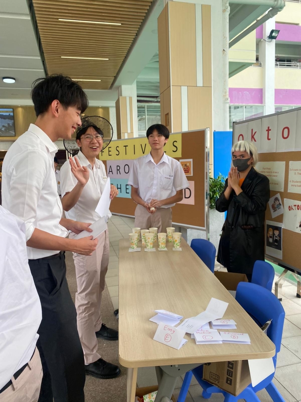 Our English teachers created an interactive and engaging "English Rainbow Tossing" booth that helped students practice prefixes and suffixes. Students would draw coins with root words and parts of speech, then toss them into the corresponding prefix or suffix rainbow. And for those moments of waiting in line, there are revision notes at the queuing stations to keep students productively occupied. This hands-on, gamified approach to vocabulary learning is sure to make it more enjoyable and effective for students. 😊