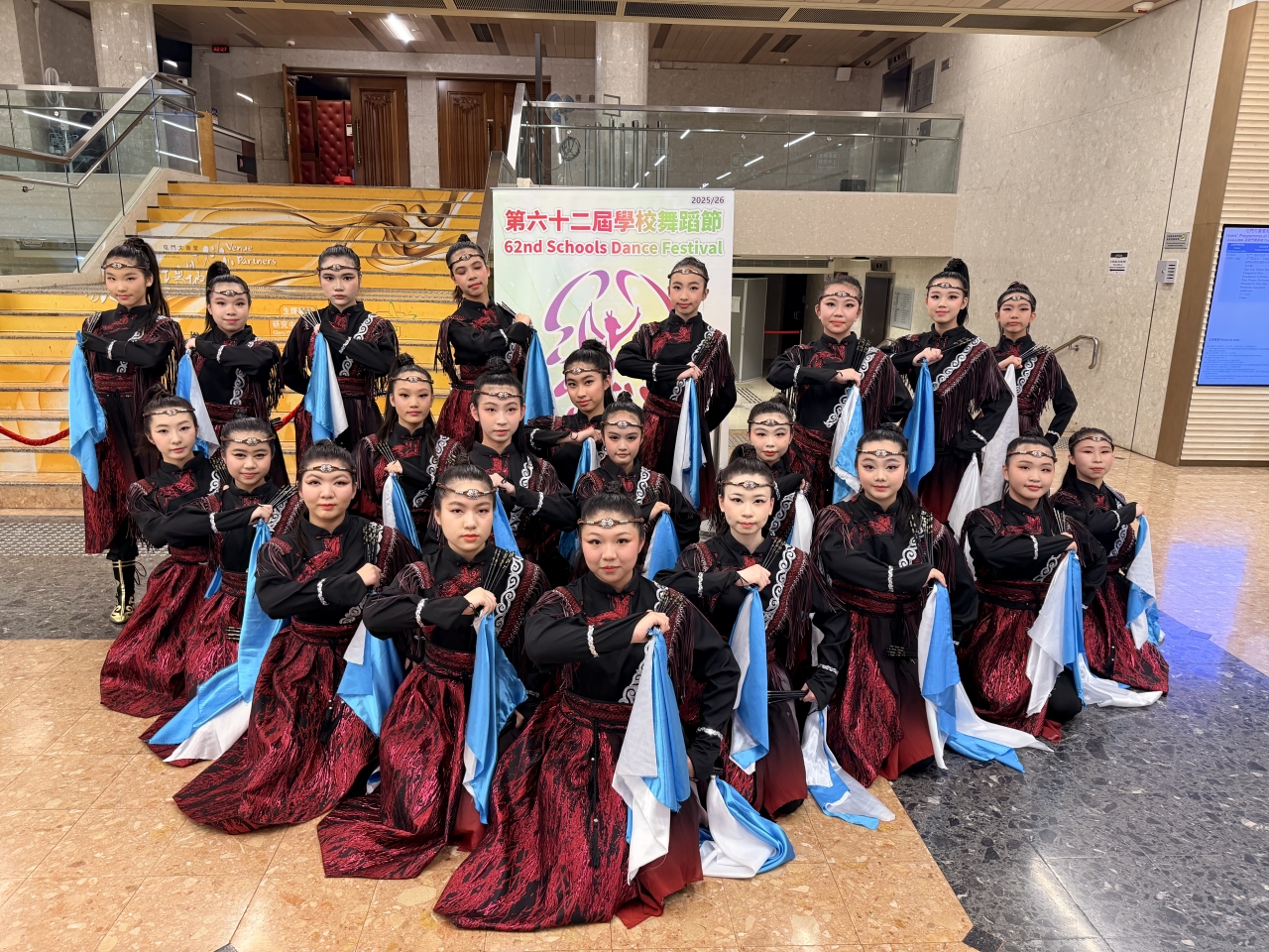我校中國舞蹈隊以群舞《風呼嘯,馬疾馳》參加「第六十二屆學校舞蹈節」,隊員們宛如廣闊無垠原野上的萬馬奔騰,展現出澎湃的氣勢,榮獲甲級獎!