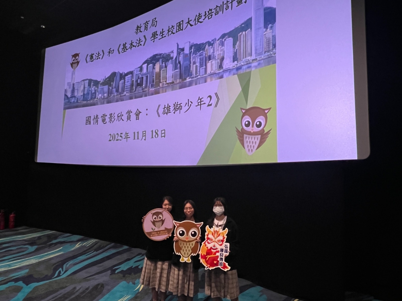11 月 18 日,我校《憲法》及《基本法》學生校園大使出席由教育局舉辦的《雄獅少年 2》電影欣賞會。 電影中,舞獅少年阿娟為籌措父親手術費,應邀代表傳統武術拳館參戰大賽 —— 既延續了首集「醒獅」的文化内核,更以精彩武術格鬥拉滿張力。阿娟的現實困境與執著堅守,道盡傳統文化傳承者的初心與直面挑戰的韌性。
