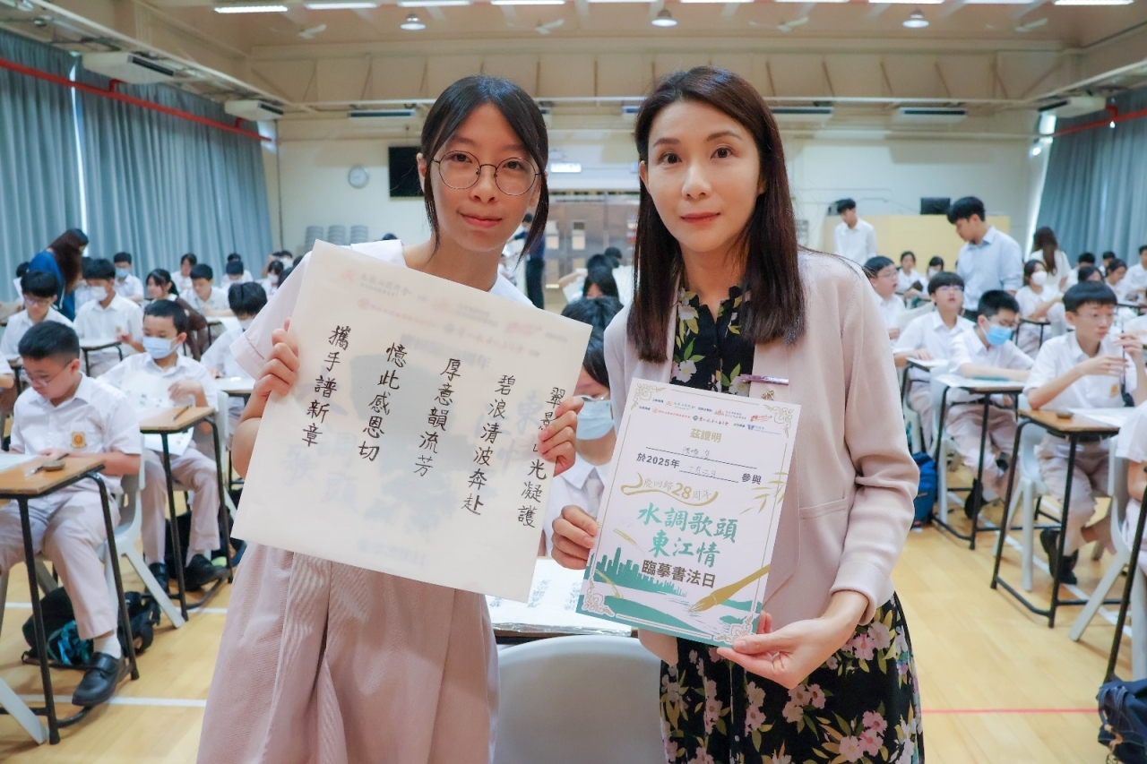 10 月 2 日,本校全體中二級學生參加由九龍社團聯會黃大仙地區委員會主辦的「慶回歸28周年 — 水調歌頭・東江情臨摹書法日」活動。本次活動恰逢東江水供港60周年,以「水調歌頭・東江情」為主題,旨在讓學生深刻認識東江水對香港的重要性,並以筆墨抒發感恩之情。